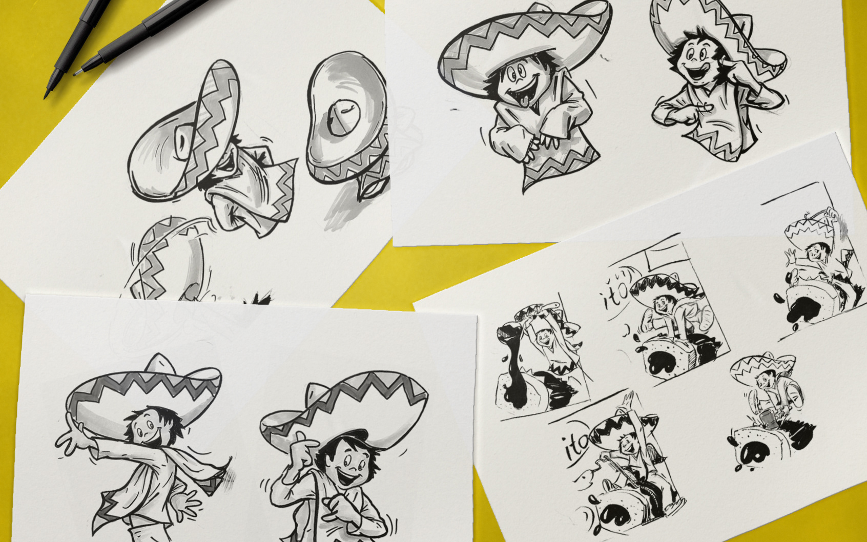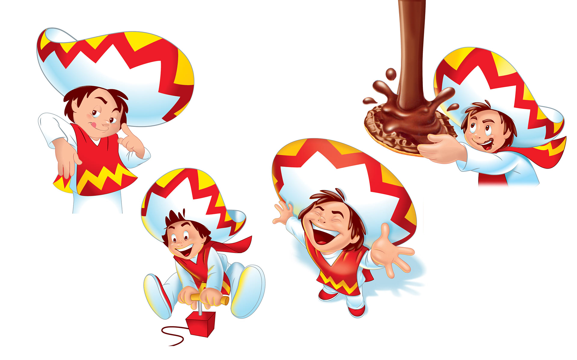 The uplifting of Pépito was needed not only to modernize the character but to put an end to the inconsistency of the drawing through the whole range of packs. Client: Landor Associates, Paris